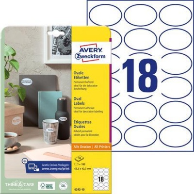 KezdőlapIrodaszerekIrodai papíráruEtikettekEtikett, univerzális, 63,5x42,3 mm, ovális, AVERY ZWECKOFRM, 180 etikett/csomag